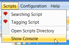 true, the script’s entry in the Scripts menu will be disabled if no items are currently checked in the results view. - SmallIcon – This entry specifies the icon used for this script’s menu entry. Value provided should be the file name (without directory) of an image file in the same directory as the