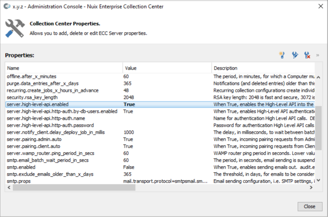 server.high-level.api.enabledfield and then click the Edit Property button. - Change the value to